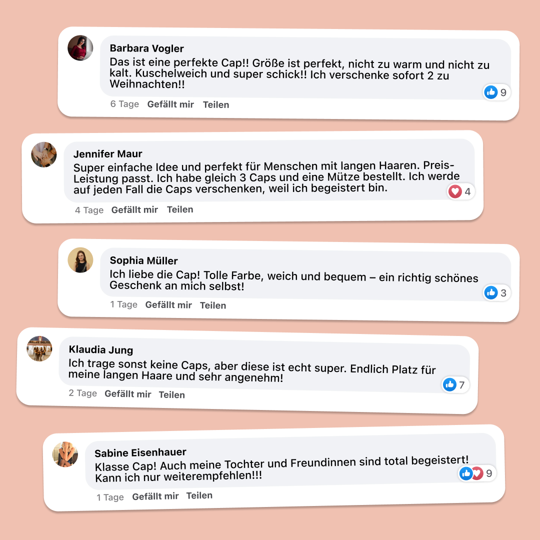 Für beste Ergebnisse: Wasch deine Ponyloop® Cap am besten von Hand mit kaltem Wasser und lass sie an der Luft trocknen. Und denk dran – wenn du sie gerade nicht trägst, halt sie von Wind und Wetter fern!